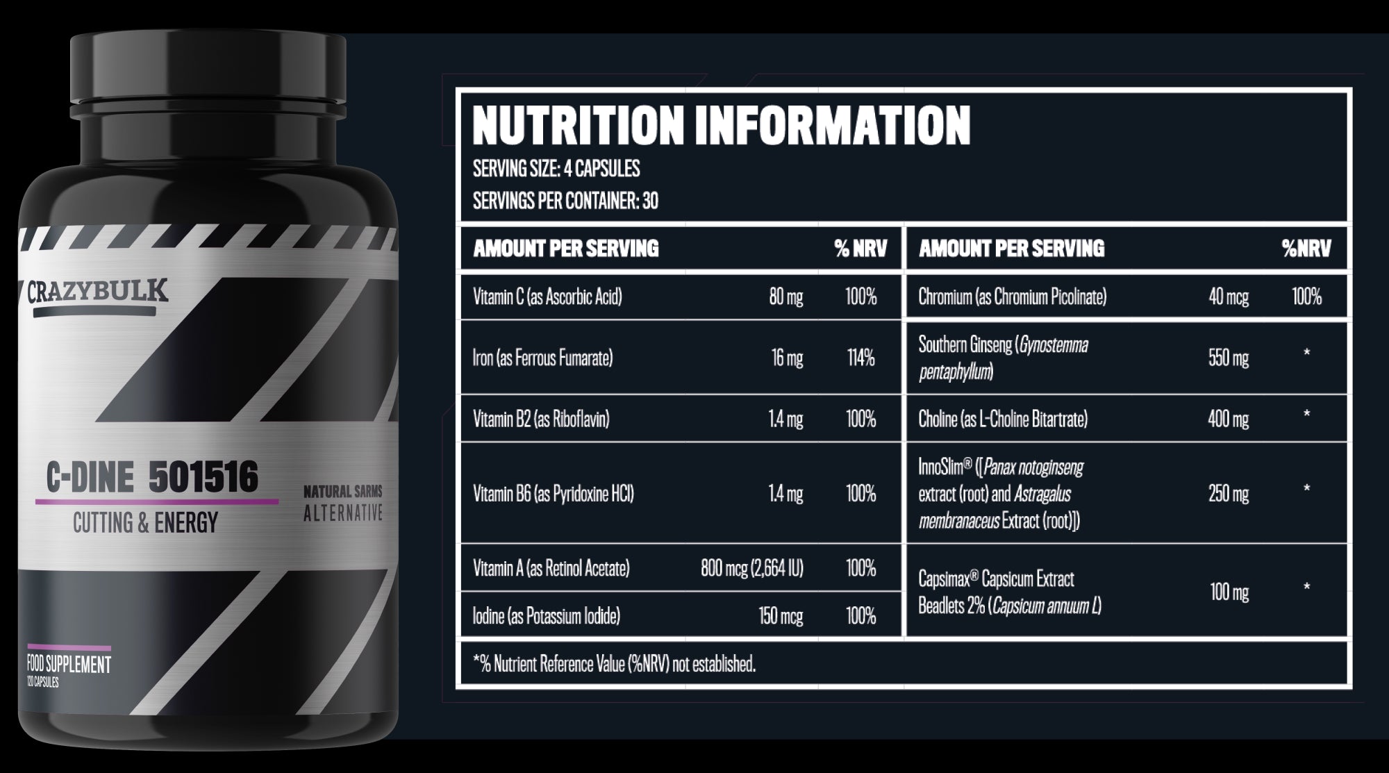 C-DINE 501516 is an all natural, safe, and legal CARDARINE GW501516 alternative that delivers natural ingredients to help fire-up your metabolism and transition your body into a natural fat-burning state!